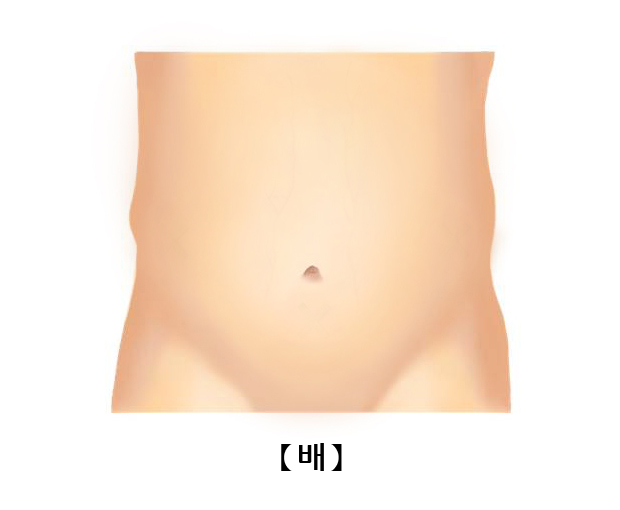 몸통의 앞부분을 뜻하며, 가슴 아래에서부터 골반 위를 말합니다.
