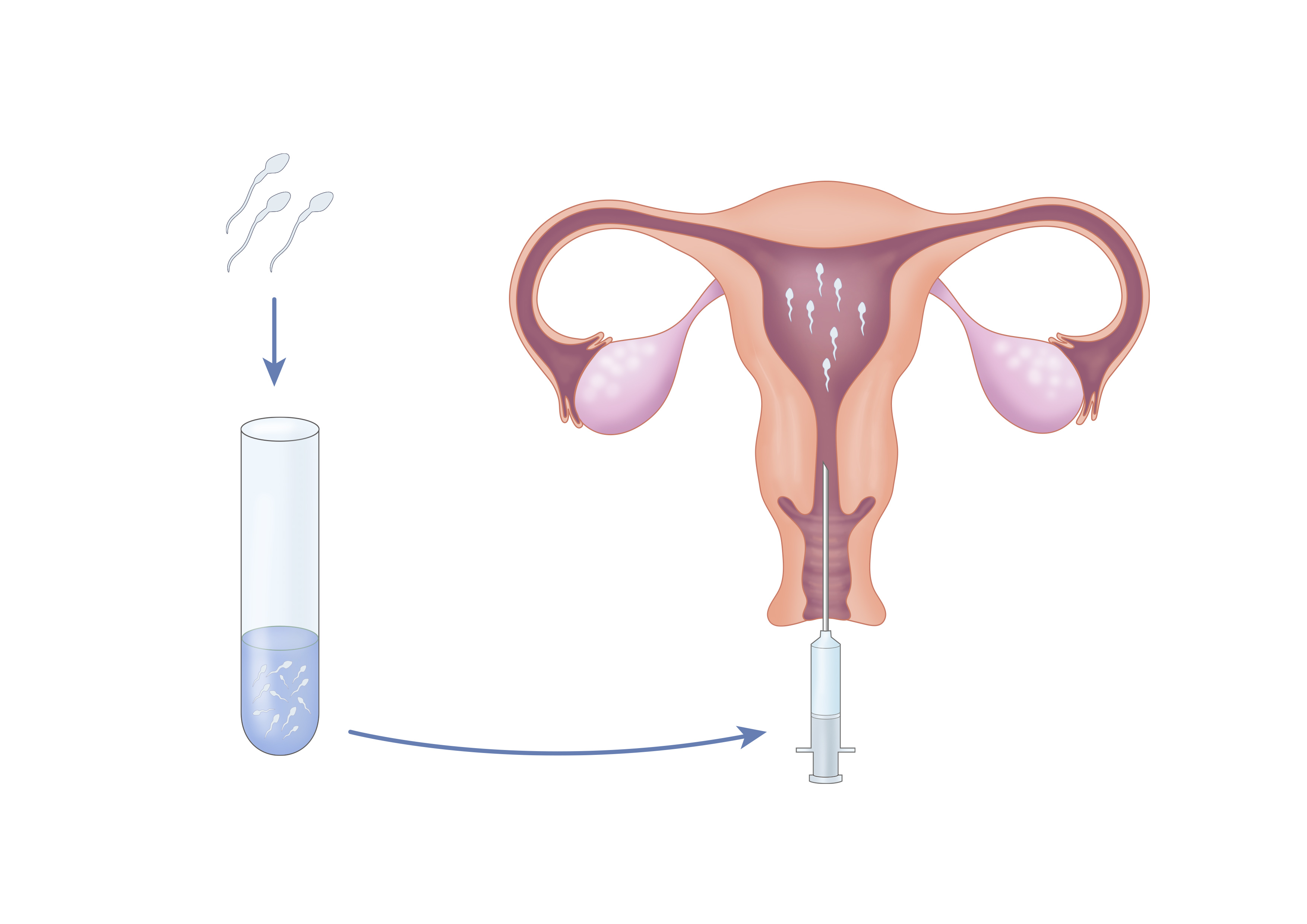 3. 분리한 정자를 관을 통해 여성의 자궁 안으로 직접 주입합니다.